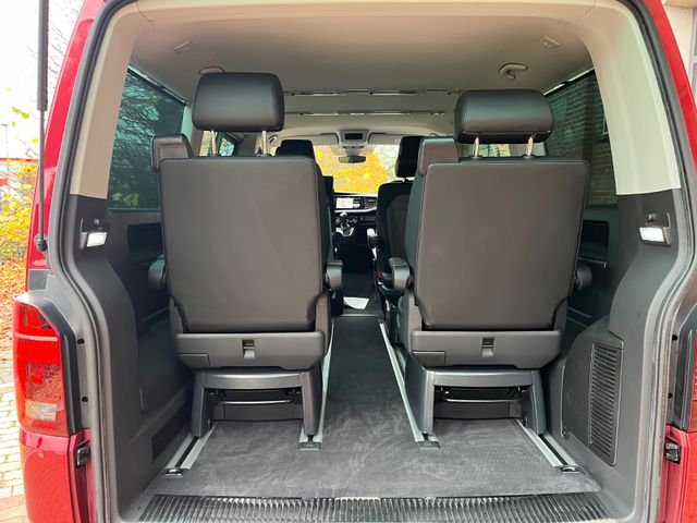 Airbag Beifahrer abschaltbar, Airbag Fahrer-/Beifahrerseite, Antriebs-Schlupfregelung (ASR), Antriebsart: Allradantrieb, Anzeige für Waschwasserstand, Armaturentafel Komfort, Ausstattungs-Paket Licht + Sicht, Außenspiegel elektr. verstell-, heiz- und anklappbar, Außenspiegel konvex, links, Außenspiegel konvex, rechts, Außenspiegel und Türgriffe außen in Wagenfarbe, Bodenbelag im Fahrerhaus: Velours-Vlies, Bodenbelag: Teppich verstärkt, Chrom-Paket, Chromleisten Stoßfänger vorn, seitlich und Heckklappe unten, Dachverkleidung Himmel Komfort mit Luftausströmer, Deaktivierungsschalter für Antriebs-Schlupfregelung (ASR), Dämmglas-Paket, Fahrassistenz-System: Autom. Distanzregelung (ACC) und Umfeldbeobachtungssystem (Front Assist, bis 210 km/h), Fahrassistenz-System: Bremsassistent (HBA), Fahrassistenz-System: Einparkhilfe vorn und hinten, Fahrassistenz-System: Fernlichtregulierung (Light Assist), Fahrassistenz-System: Multikollisionsbremse (Multi Collision Brake), Fahrassistenz-System: Seitenwind-Assistent, Fahrassistenz-System: Spurwechselassistent (Side Assist / Blind Spot Sensor), Fahrassistenz-System: Verkehrszeichenerkennung, Fahrwerk 17", Fenster im Lade-/FG-Raum: - feststehend, vorn und hinten rechts, Frontscheibe Dämmglas, Funkschlüssel (2) klappbar, Fußmatten Fahrerhaus: Velours, Haltegriffe A-Säulen, Handschuhfach abschließbar, Handschuhfach beleuchtet, Heckklappe mit Verglasung, Heckscheibe heizbar, mit Wischanlage, Innenausstattung: Dekoreinlagen Pewter Wave Grey, Innenleuchten im Fahrerhaus: Leseleuchten vorn (2), Innenleuchten im Lade-/FG-Raum LED, Umfeldleuchte in Heckklappe, Innenleuchten im Lade-/FG-Raum: Trittstufenleuchten, Innenraumfilter: Pollenfilter, Innenspiegel mit Abblendautomatik, Karosserie/Aufbau: Bus, Karosserievariante: Normaldach, Klimaautomatik Climatronic (Fahrerhaus + Lade-/Fahrgastraum), Kraftstofftank: 70 Ltr., Kühlergrill schwarz lackiert, mit Chromleisten, Ladekanten-/ Trittstufenabdeckungen in Edelstahl, Lenksäule (Lenkrad) verstellbar, Mobile Online Dienste App-Connect Wired und Wireless, Mobile Online Dienste We Connect Plus, Mobiltelefon Schnittstelle Bluetooth, Motor 2,0 Ltr. - 150 kW TDI, Multifunktionsanzeige Premium (Farbdisplay), Multimedia-Schnittstelle 2 x USB (Typ C) vorn und 2 x USB-Ladeanschluß an C-Säule, Nichtraucher-Paket, Notrufsystem, Radioempfang digital (DAB+), Radstand 3000 mm, Reifenkontroll-Anzeige, Schadstoffarm nach Abgasnorm Euro 6d, Scheinwerfer und Heckleuchten LED, Schiebetür Lade-/Fahrgastraum rechts, Seitenairbag / Kopfairbag (Curtain-Airbag) vorn, Seitenscheiben Dämmglas, Servolenkung elektro-mechanisch, Sitzbezug / Polsterung: ArtVelours / Kunstleder, Sitze im Fahrerhaus: Beifahrersitz Komfort, Sitze im Fahrerhaus: Fahrer- und Beifahrersitz heizbar, Sitze im Fahrerhaus: Fahrer- und Beifahrersitz höhenverstellbar, Sitze im Fahrerhaus: Fahrersitz Komfort, Sitze im Fahrerhaus: Lendenwirbelstützen Fahrer- und Beifahrersitz, Sitze im Lade-/FG-Raum: 1.Reihe, 2 Drehsitze, Sonnenblenden mit Spiegel (beleuchtet), Sonnenschutzrollo im Fahrgastraum, Sprachsteuerungs-System, Start/Stop-Anlage Motor, Steckdosen (12V-Anschluß) im Fahrerhaus (2 Stück), Steckdosen (12V-Anschluß) im Lade-/Fahrgastraum (2 Stück), Stoßfänger in Wagenfarbe, Verglasung hinten abgedunkelt, Verkleidung im Lade-/FG-Raum: Komfort, Verzurrösen Laderaum, Warnanlage für Sicherheitsgurte (Fahrer-/Beifahrerseite), Zentralverriegelung mit Fernbedienung und Innenbetätigung, Zuheizer, Zul. Gesamtgewicht 3,08 t
